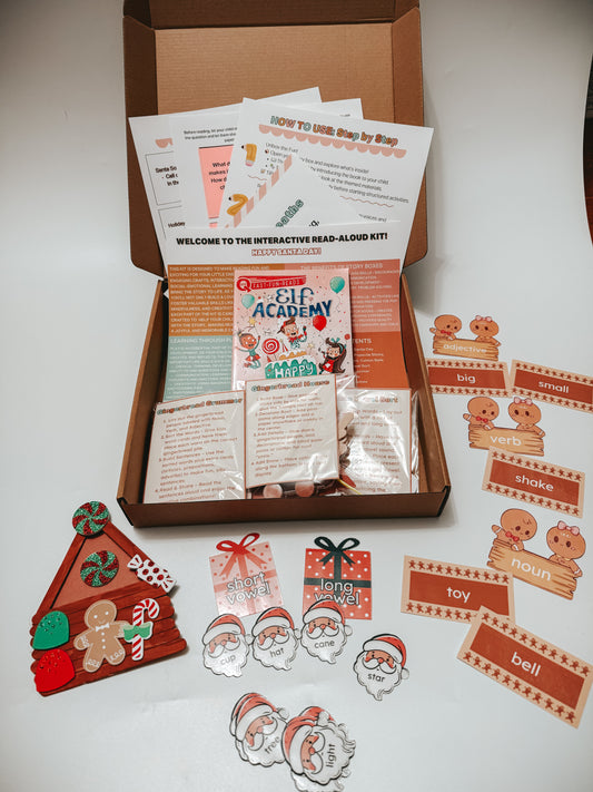 Elf Academy: Happy Santa Day Story Box | Christmas Literacy Kit for Kids Ages 5–8 | Grammar, Vowels & Gingerbread Craft Fun