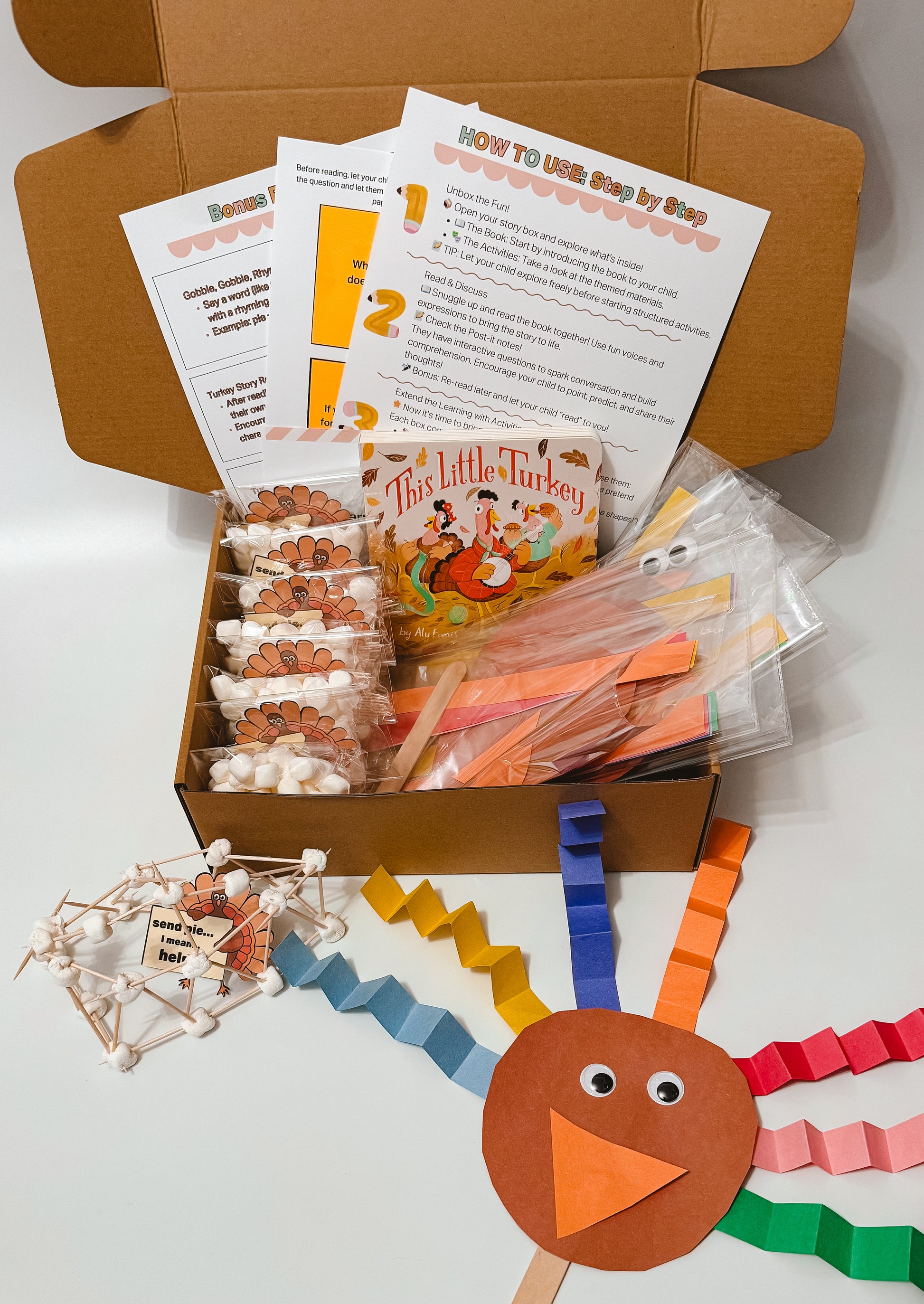 Whether you’re hosting Thanksgiving dinner, planning a Friendsgiving, or setting up a kids’ activity table — the I’m a Little Turkey Story Box makes your holiday memorable and full of laughter.