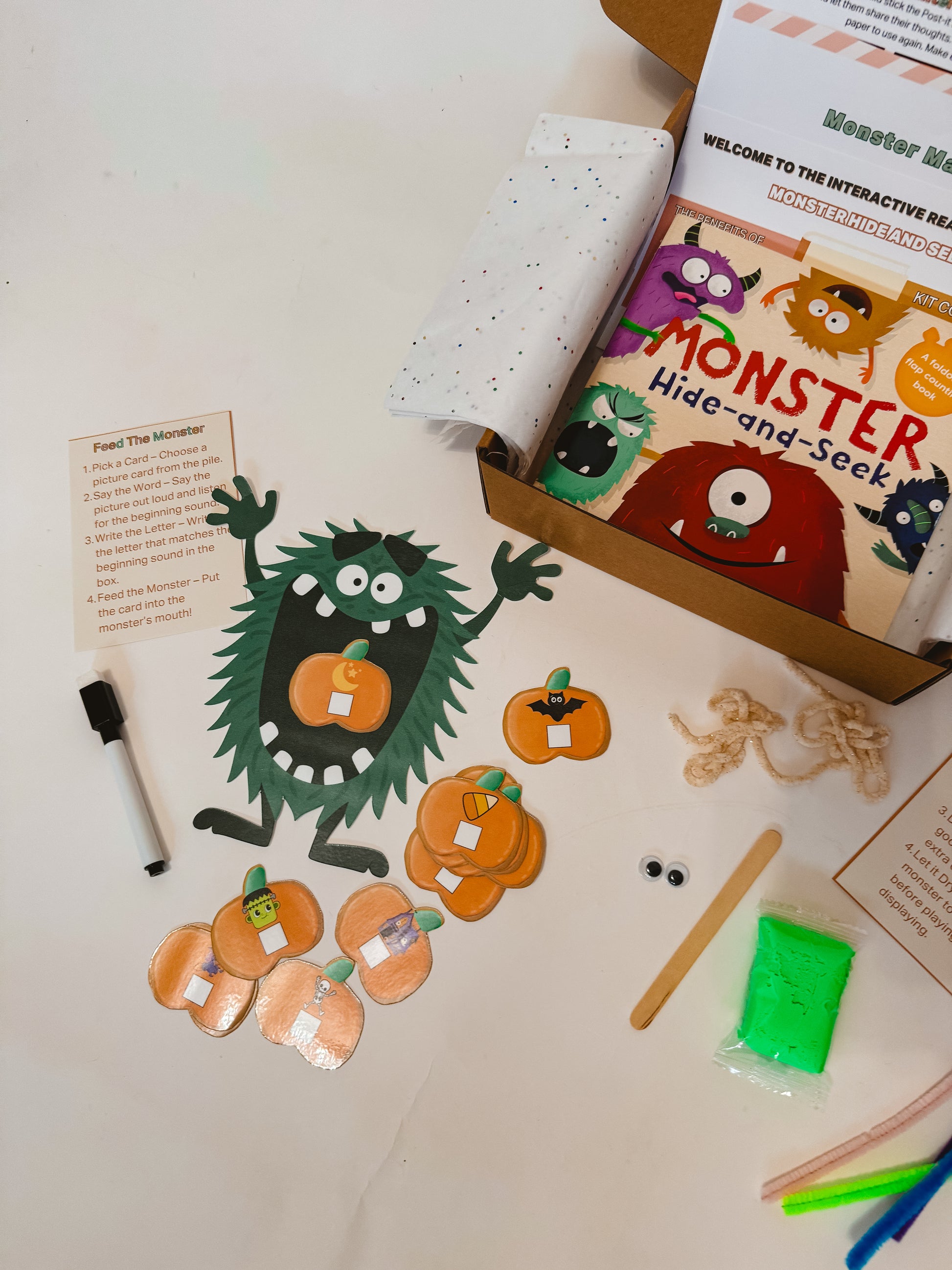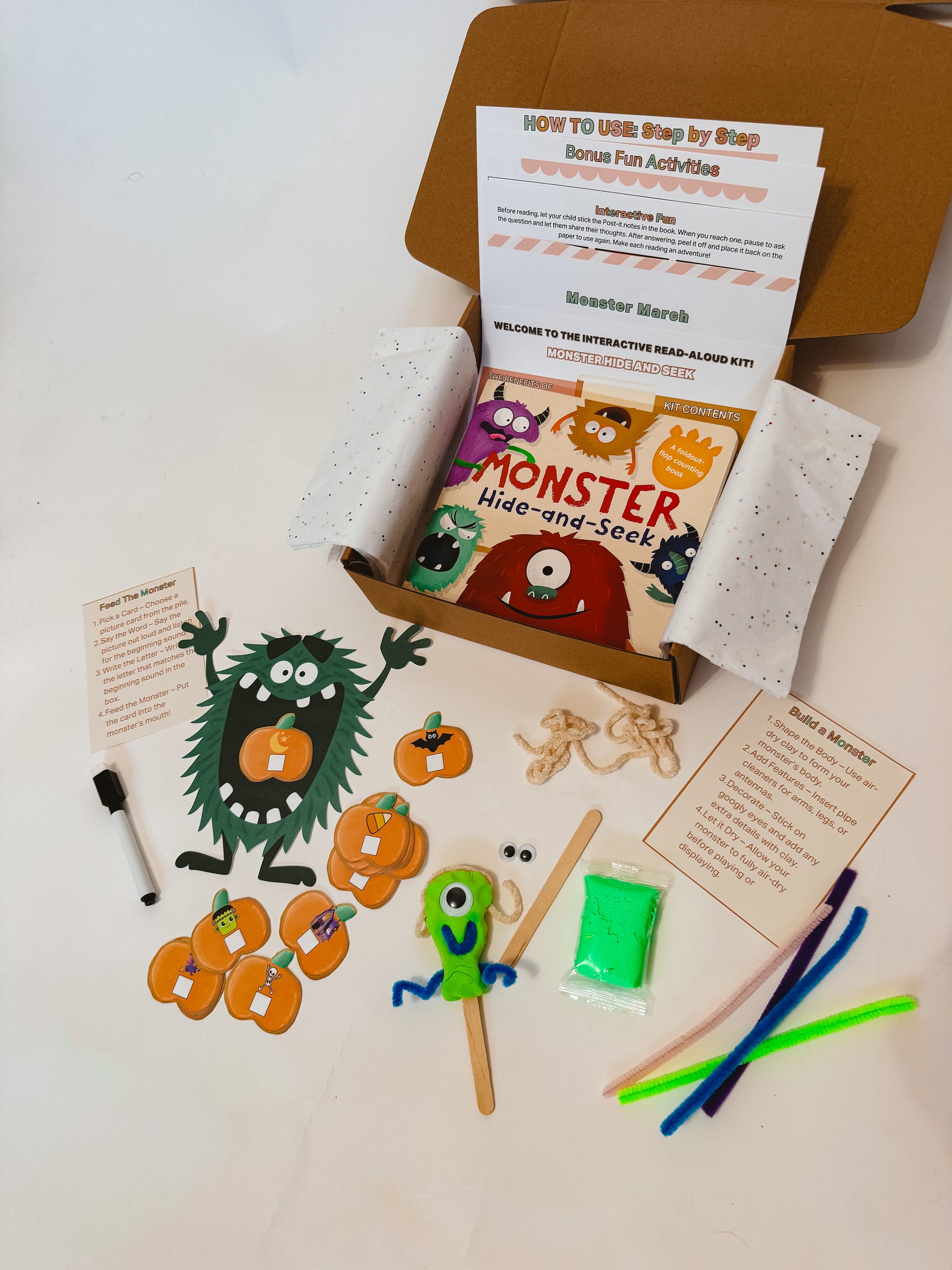 Bring giggles and learning with the Monster Hide and Seek mini story box for ages 2-4! Includes a playful story, hands-on activities, and a simple craft designed to spark imagination, early literacy, and fine motor skills in toddlers.