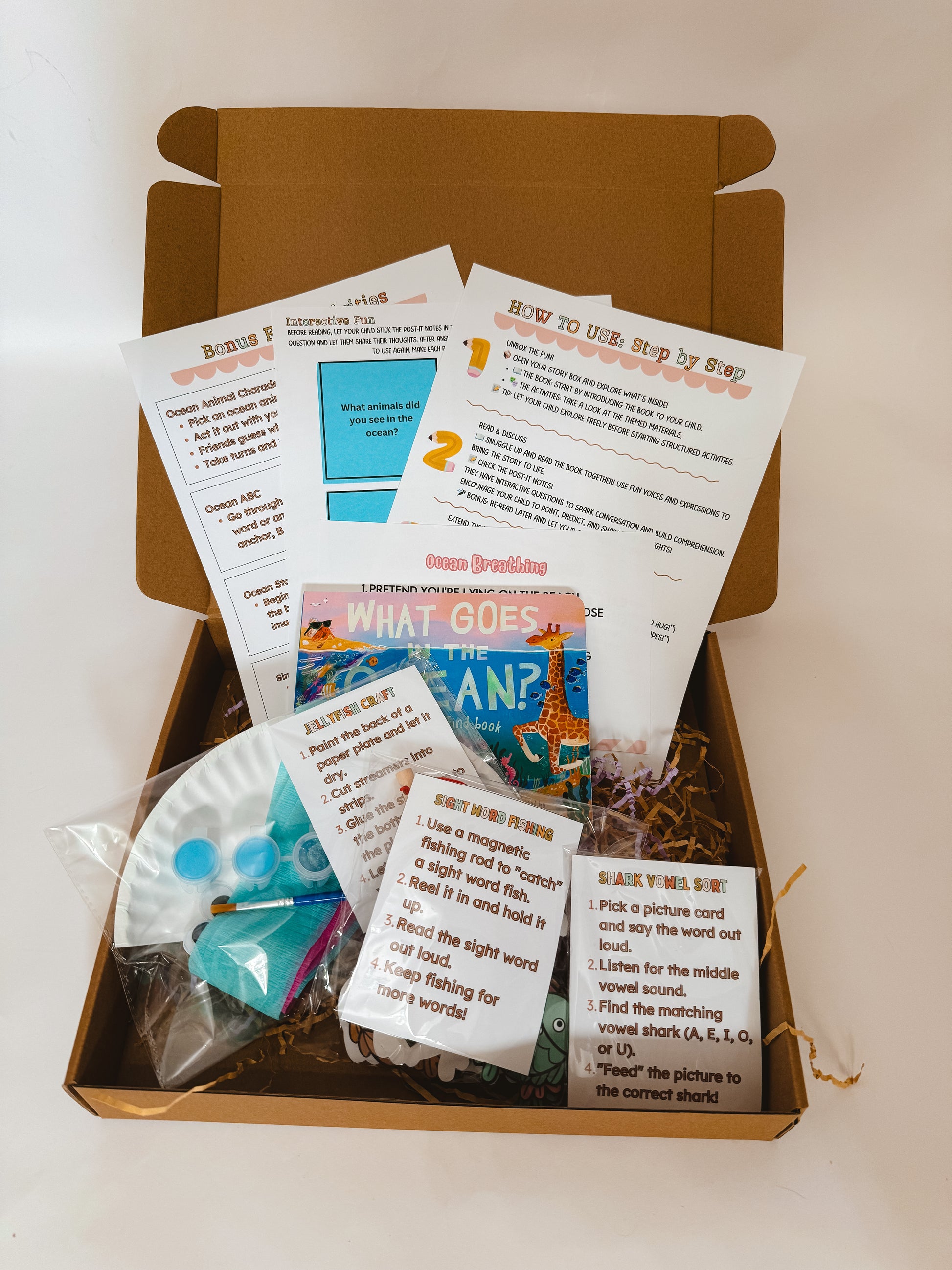 The What Goes in the Ocean? Story Box is a splashy way to bring early literacy to life for kids ages 4–6. With sea creature crafts, phonics games, and playful sight word practice, this ocean-themed learning kit will keep your little learner engaged from start to finish.