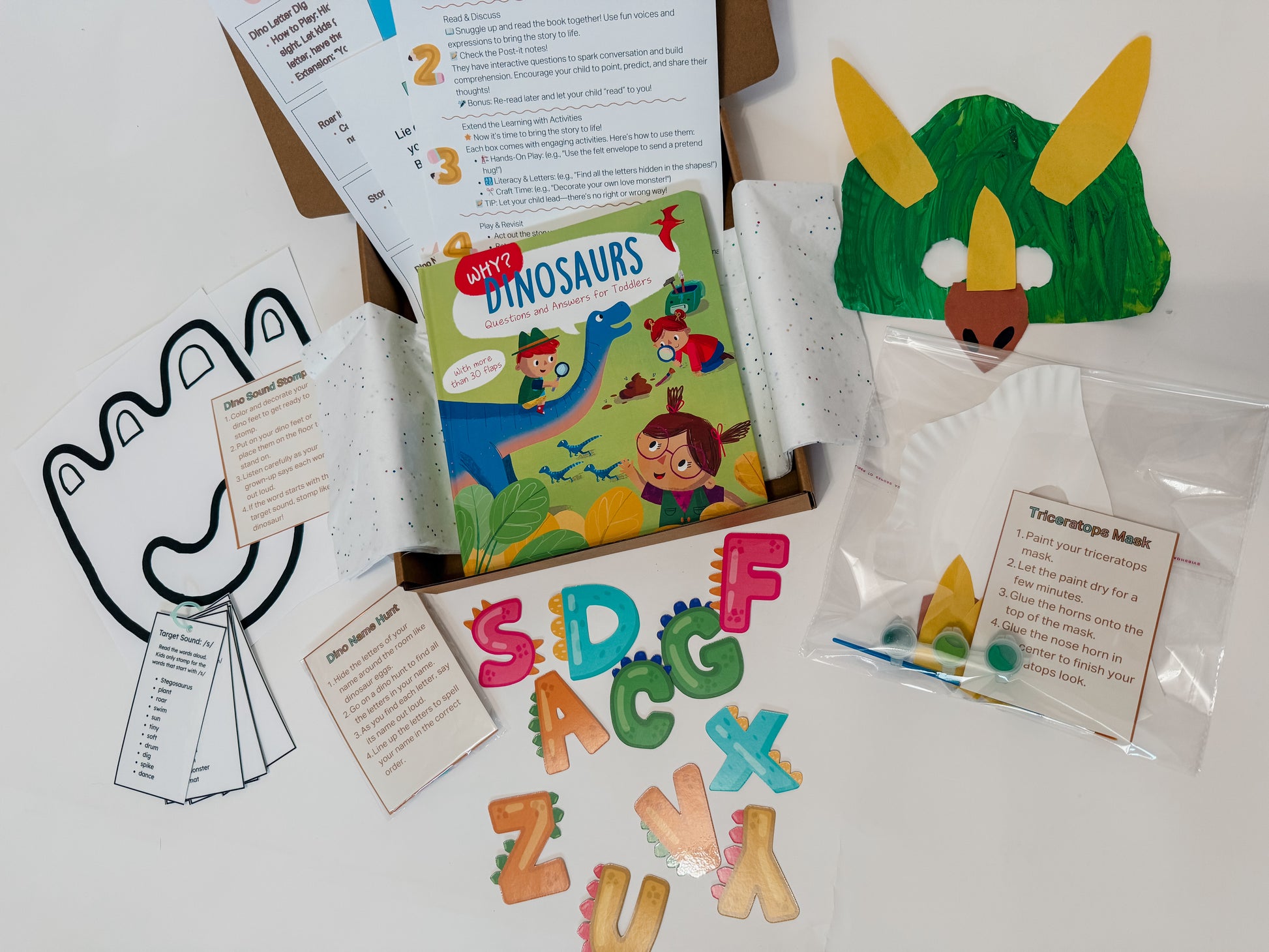 Spark curiosity with the Why? Dinosaurs Questions & Answers story box for ages 2-4! Includes a playful dinosaur story, hands-on activities, and simple crafts to help toddlers explore dinos, ask questions, and build early learning skills in a fun, engaging way.